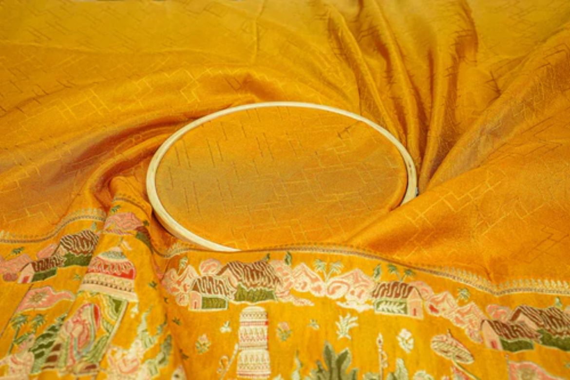 - Mustard Embroidered Tissue with Traditional Zari Elegance